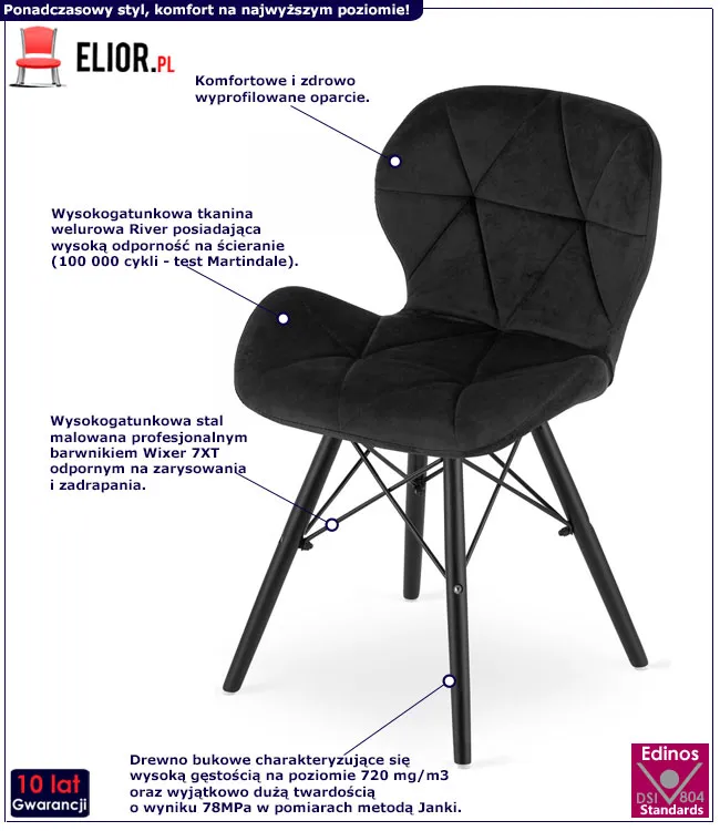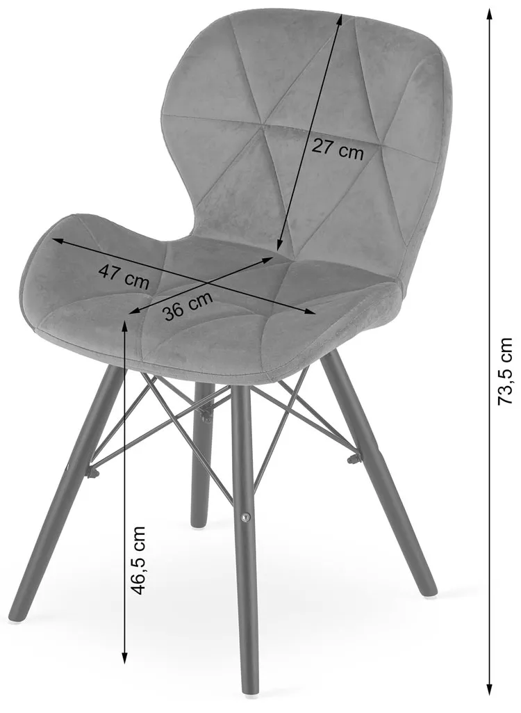 Dotyczy: Szare welurowe krzesło pikowane do stołu - Inez 6X