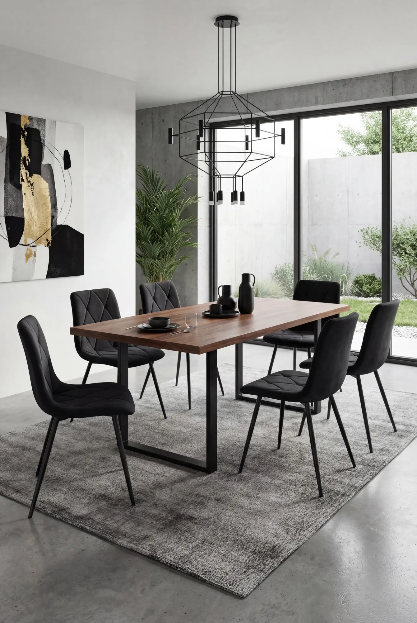 Aranżacja jadalni z czarnymi krzesłami Lumario