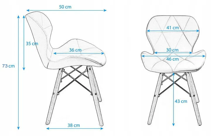 • Wymiary: szerokość mebla: 46 cm, głębokość mebla: 50 cm, wysokość całkowita: 73 cm, szerokość siedziska: 46 cm, głębokość siedziska: 36 cm, wysokość siedziska: 43 cm.