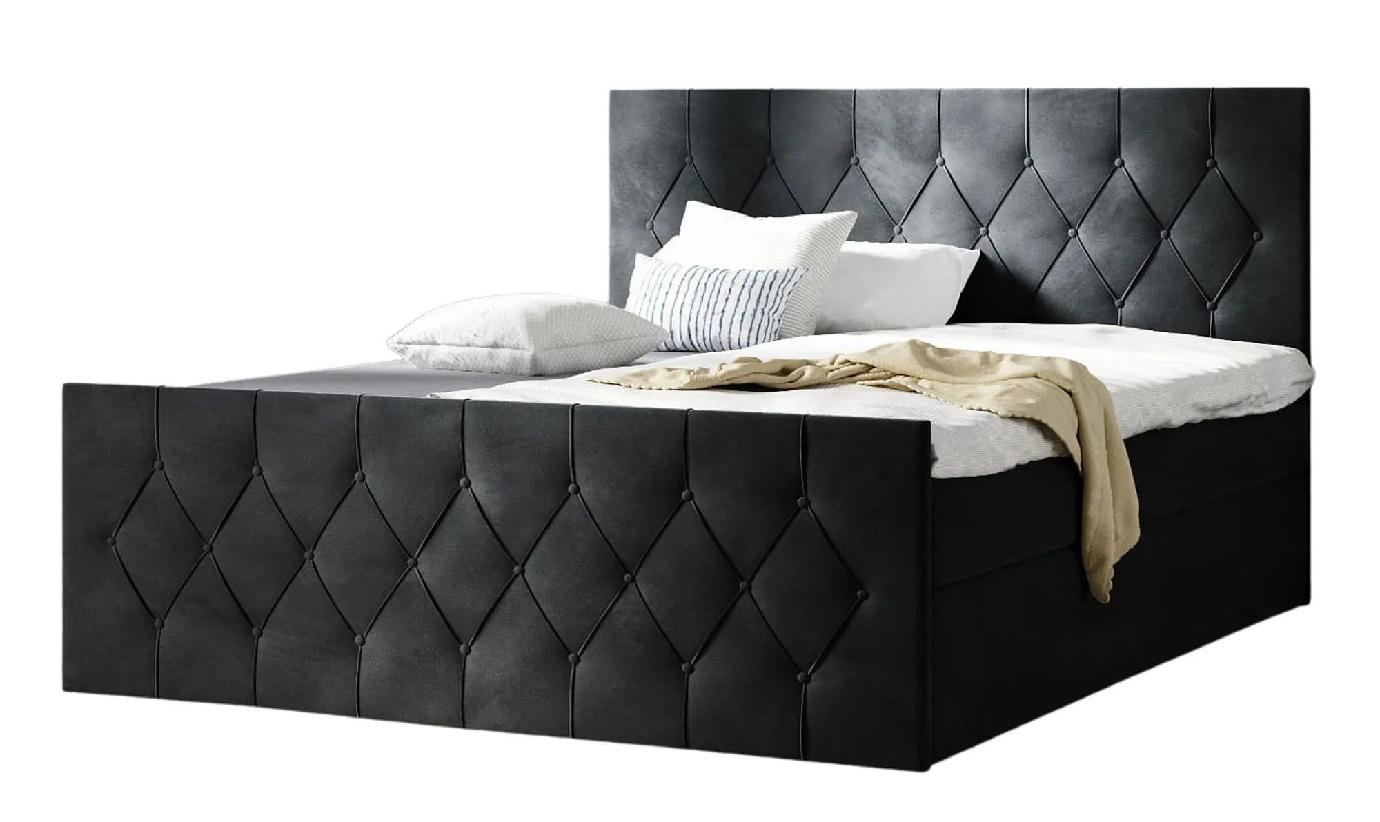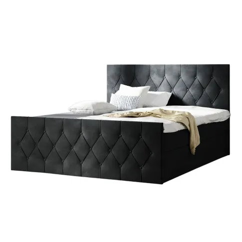 Czarne welurowe łóżko kontynentalne 5 rozmiarów - Omelisse