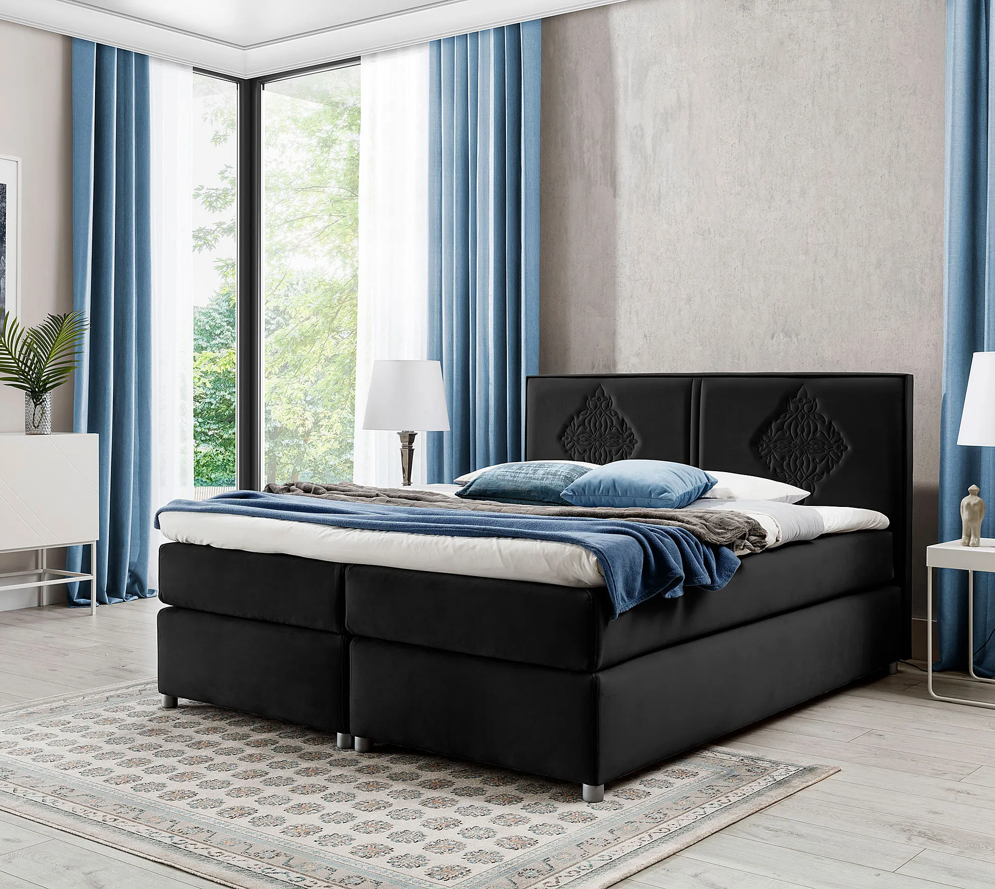 Dotyczy: Różowe welurowe łóżko kontynentalne 5 rozmiarów - Folvenna