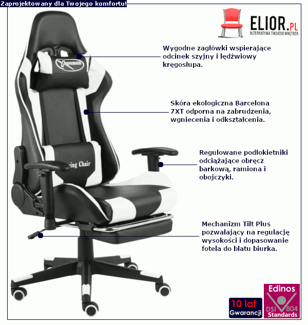 Dotyczy: Czarno-szary fotel gamingowy z podnóżkiem - Silmi