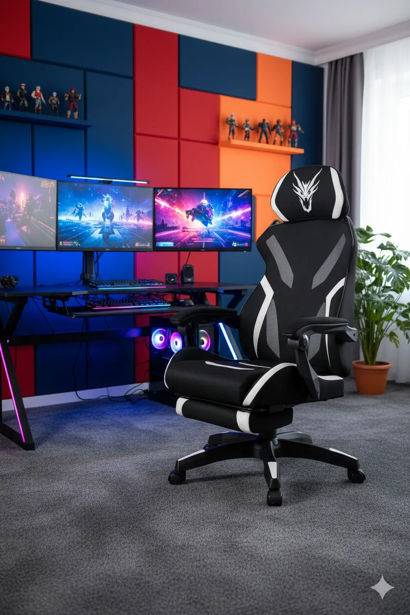 Dotyczy: Czarno-żółty fotel gamingowy z podnóżkiem - Talbin