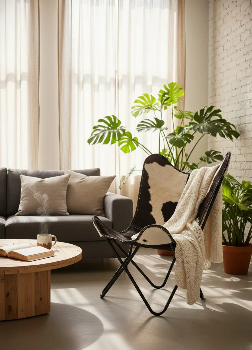 Dotyczy: Brązowo-biały fotel butterfly retro - Curt 4X