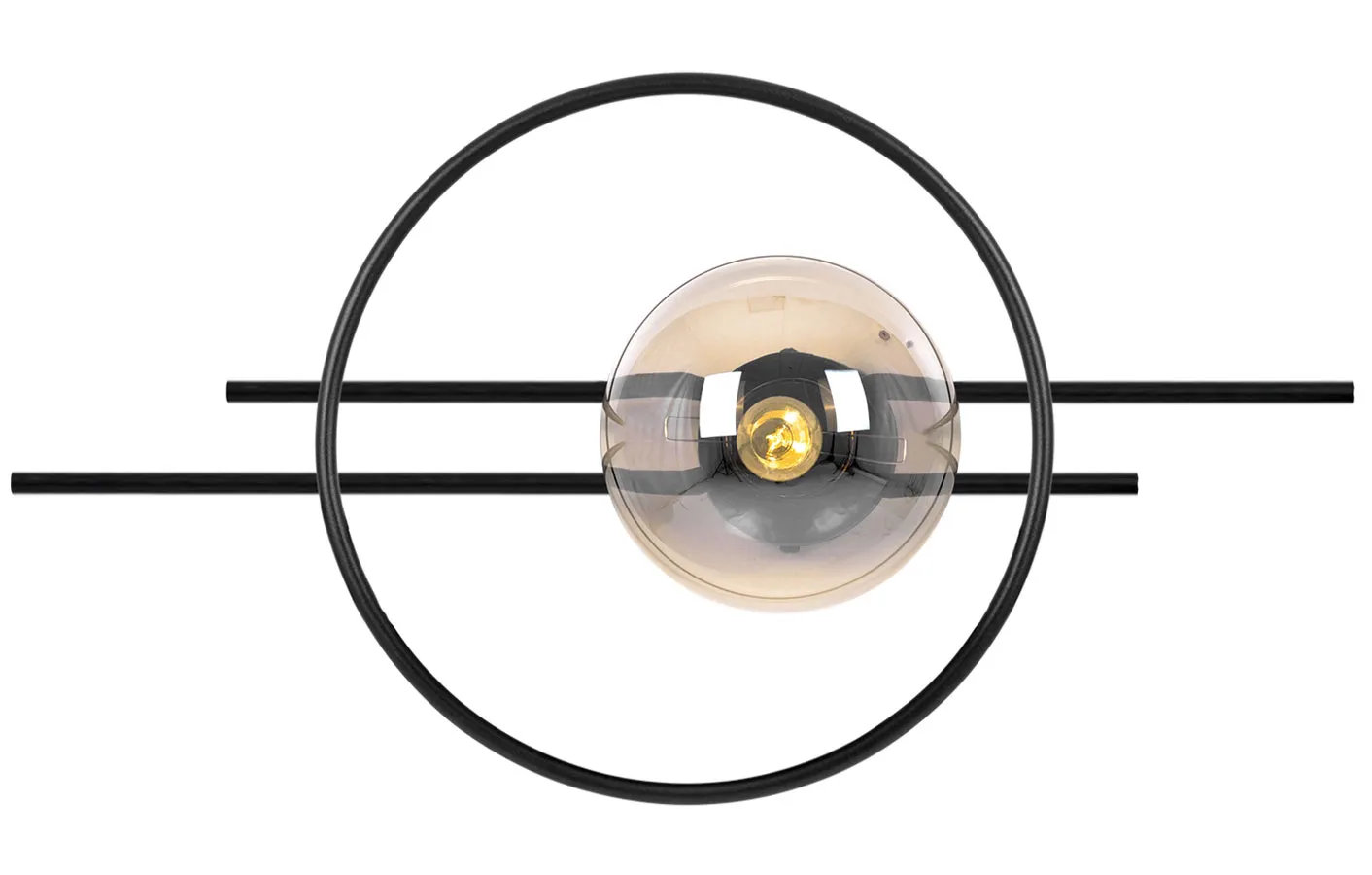 Czarno-bursztynowy metalowy kinkiet geometryczny ze szklanym kloszem A721-Sateli