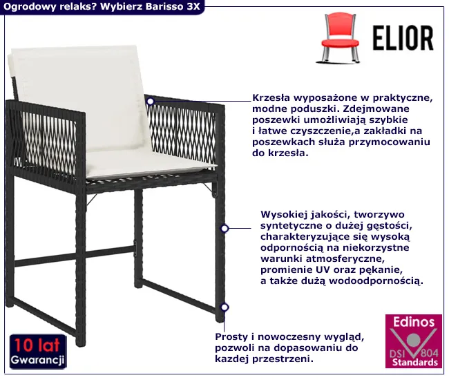 Dotyczy: Czarne krzesła ogrodowe z poduszkami 4 szt. - Baltica 3X