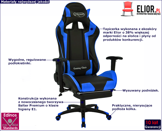 • Kolor: czarno-niebieski. Kliknij w link i sprawdź także inne fotele gamingowe w sklepie Edinos.pl. Stwórz swój praktyczny zestaw mebli.