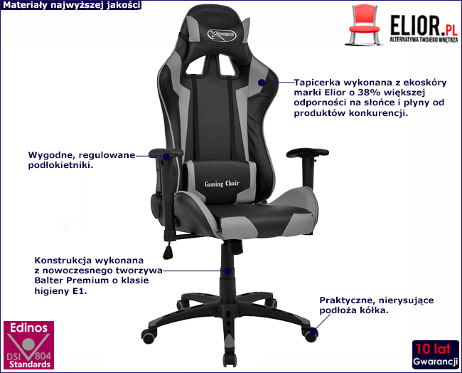 - Kolor: czarno-szary. Kliknij w link i sprawdź także inne fotele gamingowe w sklepie Edinos.pl. Stwórz swój praktyczny zestaw mebli.