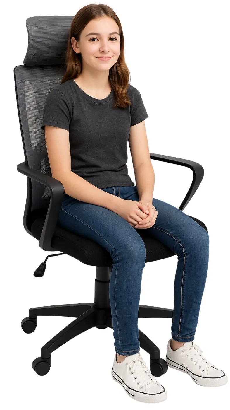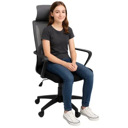 • Regulacja wysokości: Fotel młodzieżowy jest wyposażony w siłownik, który umożliwia regulację wysokości siedzenia, dostosowując go do indywidualnych potrzeb użytkownika.