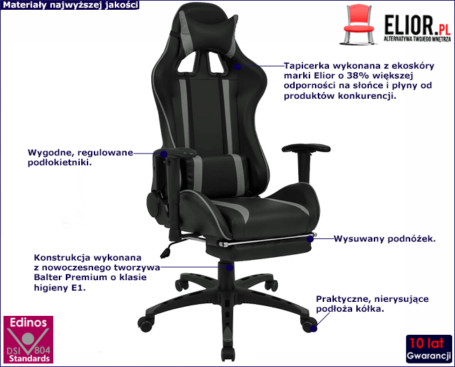 - Kolor: czarno-szary. Kliknij w link i sprawdź także inne fotele gamingowe w sklepie Edinos.pl. Stwórz swój praktyczny zestaw mebli.