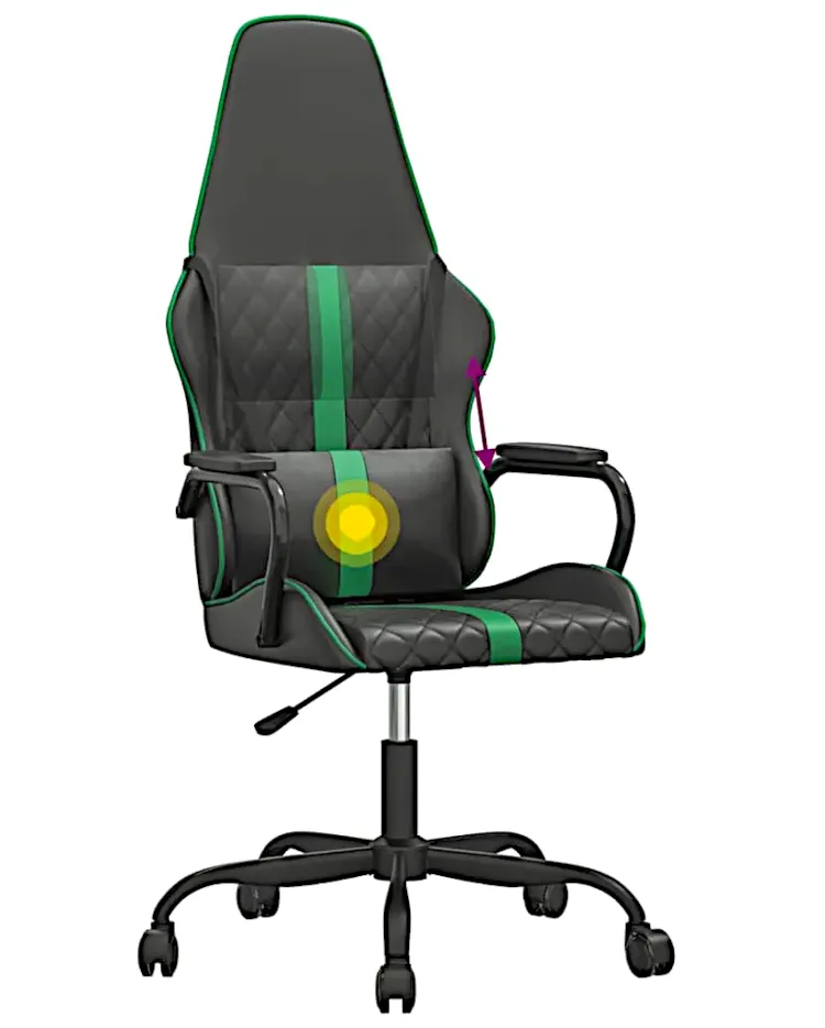 Czarno-zielony masujący fotel gamingowy - Pagis 9X
