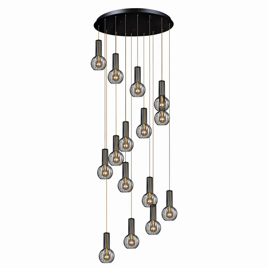 Czarno-złota loftowa lampa wisząca - J099-Lovet