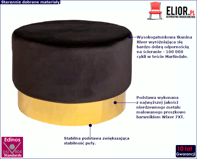 • Kolor: czarno-złoty. Kliknij w link i sprawdź także inne pufy w sklepie Edinos.pl. Stwórz swój praktyczny zestaw mebli.