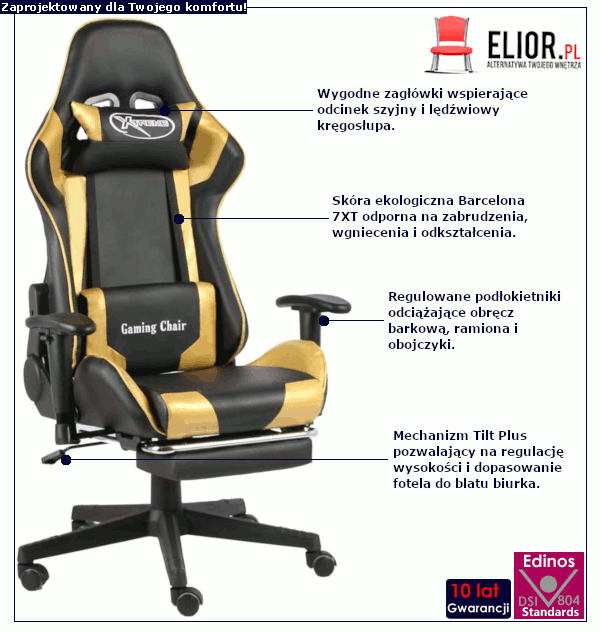 Dotyczy: Czarno-szary fotel gamingowy z podnóżkiem - Silmi
