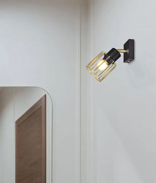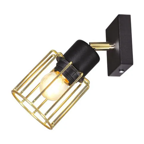 Czarno-złoty kinkiet ścienny z drucianym kloszem S578-Syntio