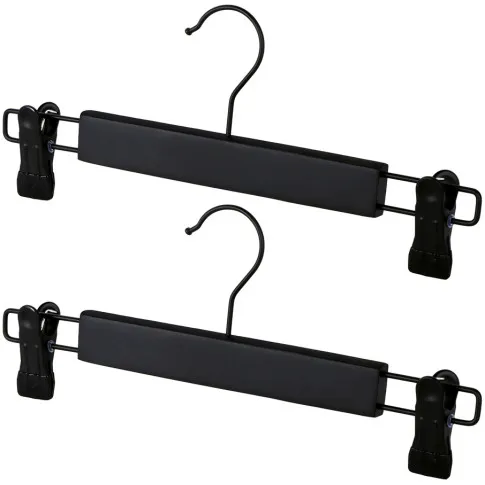 Zestaw dwóch wieszaków to dobre rozwiązanie do mniejszych przestrzeni gdzie liczy się estetyka i funkcjonalność. Wieszaki są wykonane z drewna w matowej czerni, co sprawia że prezentują się bardzo elegancko. Klipsy są mocne i nie zostawiają odcisków. Przechowuję na nich nie tylko spódnice ale też spodnie i szaliki. Nic się nie przesuwa, wszystko trzyma się stabilnie. Produkt dotarł szybko, dobrze zabezpieczony. Widać że to nie tania masówka tylko porządna rzecz.