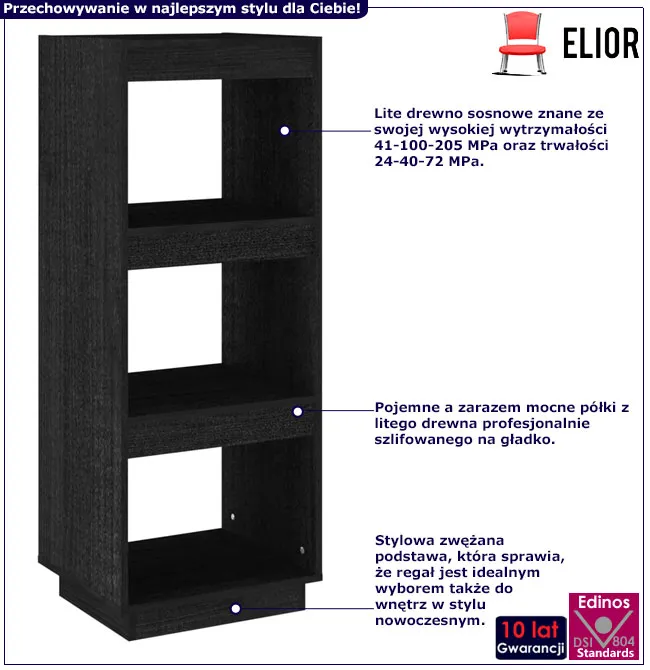 Drewniany regał Osira 3X w kolorze czarnym w promocyjnej cenie 178 zł (zamiast 288 zł) tylko w tej ofercie!!!