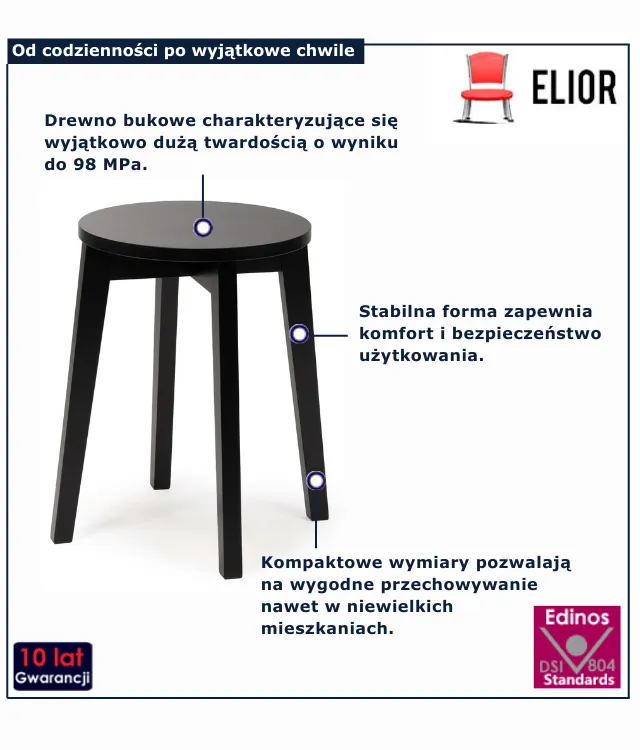 Taboret Kalio Marli Elior to przykład tego, że klasyka nigdy nie wychodzi z mody – zmienia się jedynie jej kontekst. W kuchni, jadalni, salonie czy nawet w przedpokoju będzie zawsze tam, gdzie go potrzebujesz. Minimalistyczna forma wprowadza do wnętrza ład i prostotę, a jednocześnie zachwyca ponadczasową estetyką. Wybierając ten model, inwestujesz w praktyczny mebel, który posłuży przez lata i zawsze pozostanie na czasie. Sprawdź, jak wiele możliwości daje Ci ten prosty, a jednocześnie wyjątkowy dodatek i zaproś go do swojego domu już dziś w cenie 318 zł.