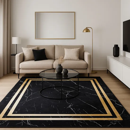 Czarny dywan do salonu ze złotą ramką Amio 7X