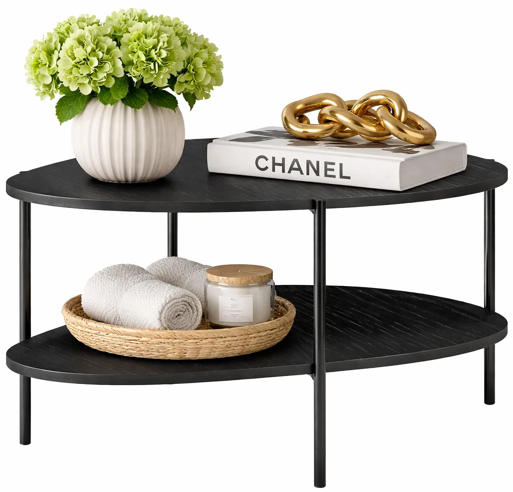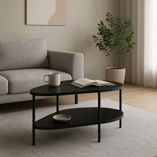 Nowoczesny stolik kawowy z kolekcji Sageri 10X to wyjątkowe połączenie funkcji i formy. Zaokrąglony, organiczny kształt blatu przełamuje surowość prostych wnętrz i wprowadza łagodny, nowoczesny akcent. Dwupoziomowa konstrukcja zwiększa użyteczność – dolna półka jest idealna na czasopisma, książki, piloty czy dekoracje. Zaokrąglone krawędzie zwiększają bezpieczeństwo – zwłaszcza w domach z dziećmi – a jego kompaktowe rozmiary sprawiają, że świetnie odnajdzie się zarówno w przestronnych salonach, jak i mniejszych pokojach dziennych. Czerń w połączeniu z prostą formą czyni z niego uniwersalny mebel do wnętrz w stylu modern, soft loft i japandi.