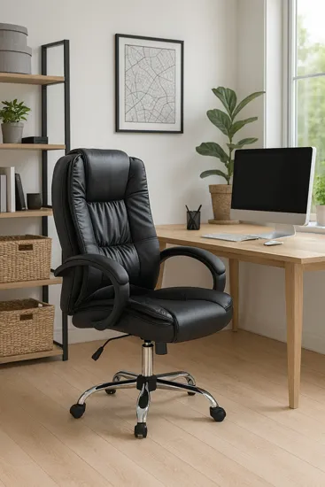 Designerska, czarna tapicerka fotela pokryta została wysokiej jakości skórą ekologiczną marki Profeos. Ekoskóra używana przy produkcji mebli Profeos jest o wiele bardziej odporna na słońce oraz wodę , co pozwala Ci na długie i bezpieczne użytkowanie. Już nie musisz się martwić, że rozlana kawa spowoduje konieczność wymiany mebla. Skóra ekologiczna marki Profeos została pokryta warstwą polichlorku winylu. Ekonomicznie wyprofilowane przy wsparciu europejskich specjalistów z dziedziny ortopedii siedzisko, oparcie oraz podłokietniki zapewniają Ci wygodę nawet podczas dłuższego czasu spędzonego za biurkiem. Fotel ten bez wątpienia zadowoli wszystkich wielbicieli nowoczesnej formy i oryginalnej stylistyki. Nie musisz ryzykować nabycia wad postawy spowodowanych użytkowaniem tanich, chińskich krzeseł. Zainwestuj w zdrowie Twoje i Twoich najbliższych kupując wysokiej jakości fotel marki Profeos.