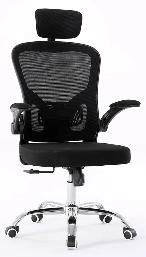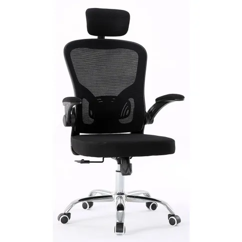 Czarny ergonomiczny fotel biurowy z zagłówkiem - Meir