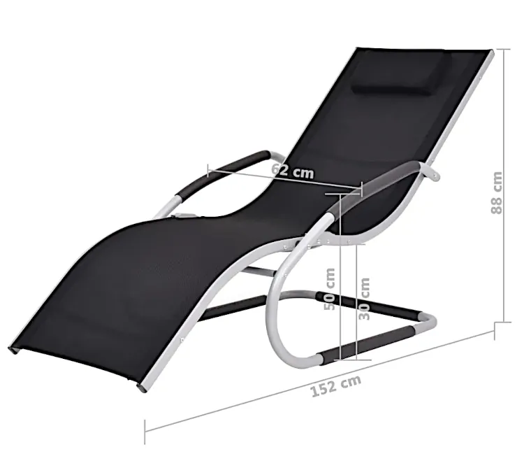• Wymiary leżaka: długość: 152 cm, szerokość: 62 cm, wysokość: 88 cm.