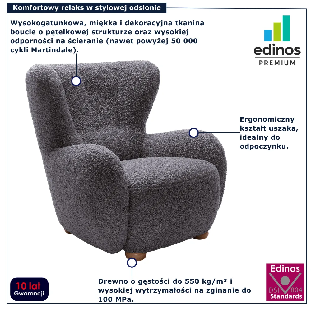 Fotel Palori marki Edinos Premium to mebel, który zaspokoi zarówno potrzeby estetyczne, jak i funkcjonalne – będzie idealnym towarzyszem długich wieczorów z książką czy filiżanką herbaty. Cena tego wyjątkowego modelu to 1848 zł. Już teraz zaproś go do swojego wnętrza i odkryj nowy wymiar komfortu!