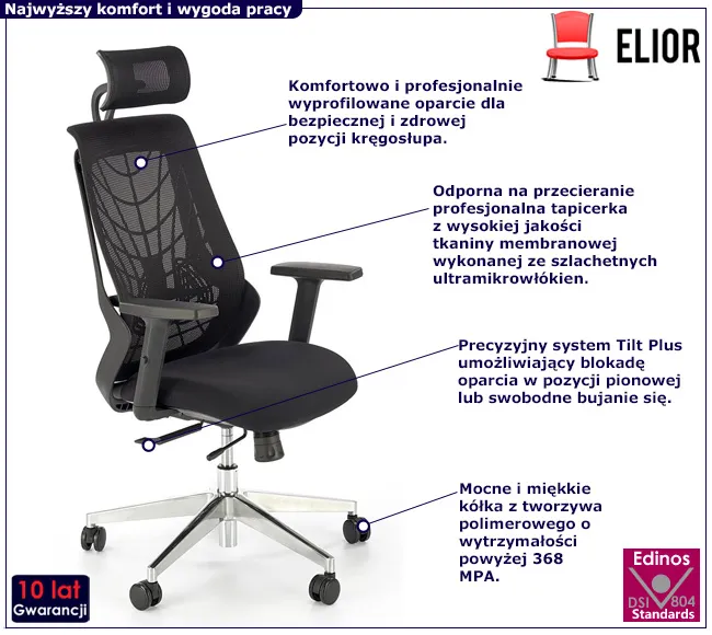 Przedstawiamy rewolucyjny fotel biurowy zgodny z rozporządzeniem MR i PS z 2023 Zynex marki Edinos Premium, stworzony z myślą o doskonałym komforcie i nowoczesnym designie. Wyjątkowy materiał membranowy oraz ergonomiczne rozwiązania sprawiają, że to nie tylko fotel, ale prawdziwe centrum efektywnej pracy i relaksu.