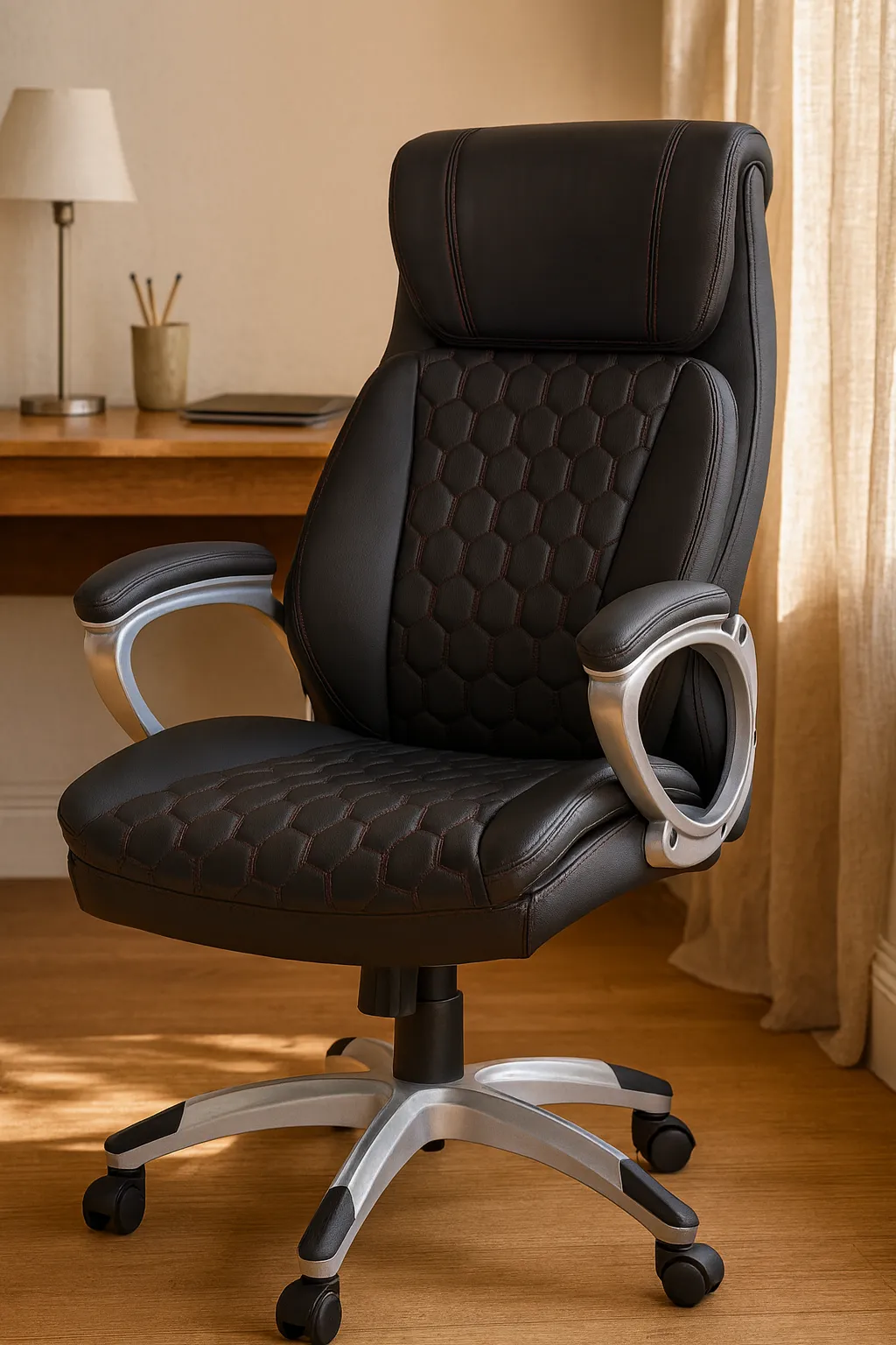 Połączenie nowoczesnego designu i wygody. Perforowana ekoskóra nie tylko świetnie wygląda, ale też zapobiega przegrzewaniu się, co jest ważne podczas długiej pracy. Regulacja i funkcje są intuicyjne. Montaż był szybki, a dostawa dobrze zaplanowana i bez opóźnień. Idealny wybór do mojego gabinetu