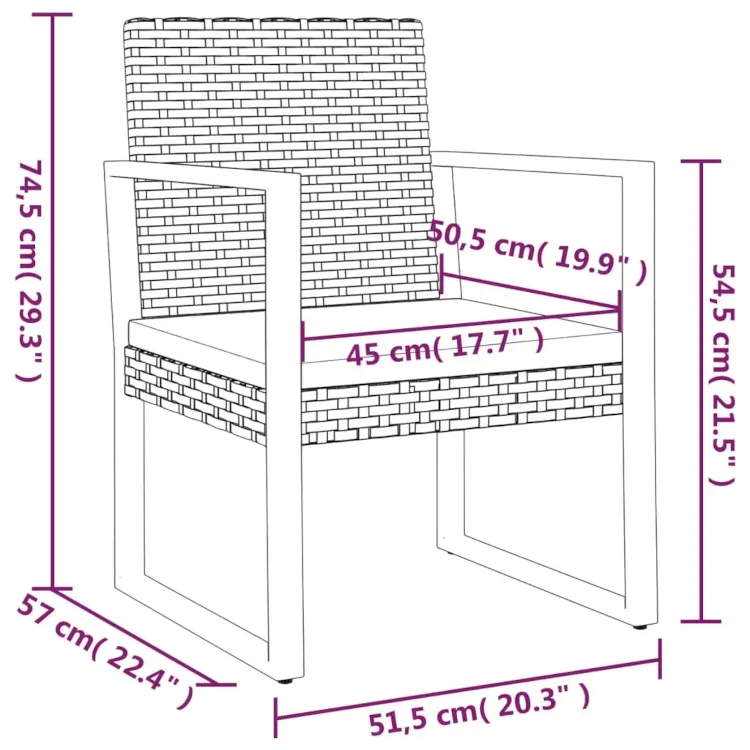 • Wymiary krzeseł: szerokość: 51,5 cm, głębokość: 57 cm, wysokość: 74,5 cm.