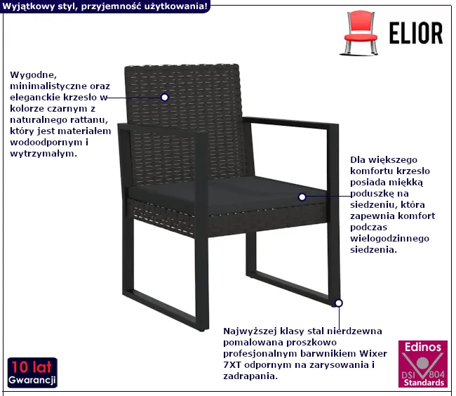 Otwórz drzwi do krainy relaksu i stylu z naszym wyjątkowym fotelem Robbie marki Edinos Premium. To niezwykłe dzieło sztuki meblarskiej nie tylko przyciąga wzrok swoim minimalistycznym designem, ale także zapewnia niezapomniane doznania w każdej chwili spędzonej na świeżym powietrzu. Wyobraź sobie moment, gdy unosząc się na chmurze wygody, wpatrujesz się w gwieździste niebo, otoczony jedynie szeptem liści i szumem natury. Czarna, smukła konstrukcja fotela kusi elegancją, a dodatkowa poduszka na siedzeniu kusi wygodą, czyniąc każdą chwilę w nim spędzoną wyjątkowo relaksującą. Ale to nie wszystko konstrukcja ze stali pokryta naturalnym rattanem to nie tylko połączenie piękna i trwałości, ale także manifestacja luksusu i funkcjonalności. Przygotuj się na podróż w krainę nieograniczonych możliwości relaksu i komfortu.