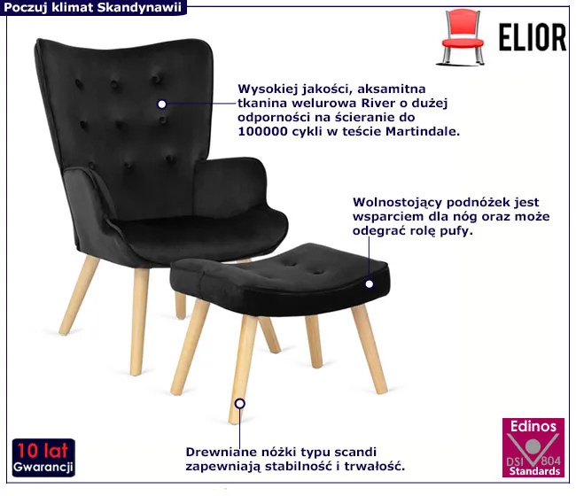 Dotyczy: Zielony welurowy fotel skandynawski - Nerra