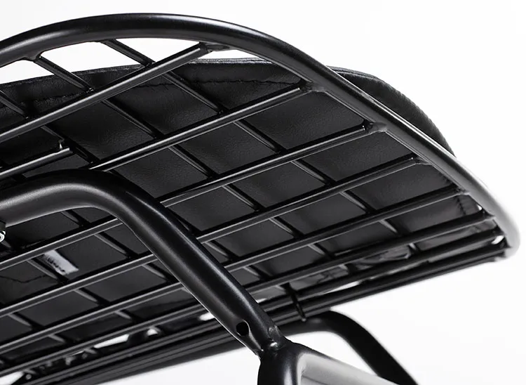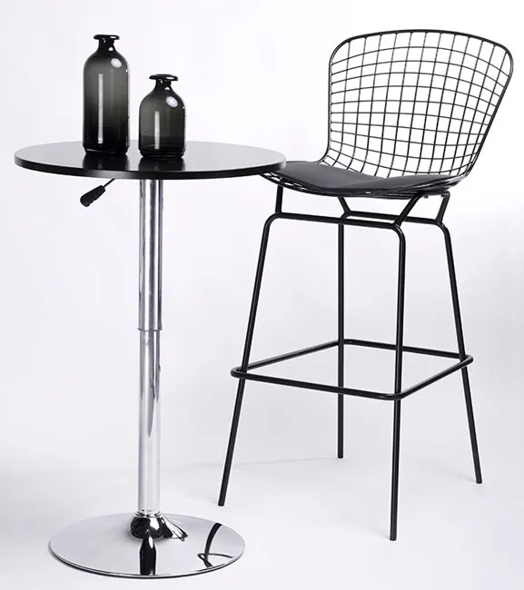 - Materiał: całość mebla to najwyższej jakości metal o wysokim połysku, odporny na korozję i uszkodzenia mechaniczne. Siedzisko wyposażone w poduszkę z ekoskóry.
