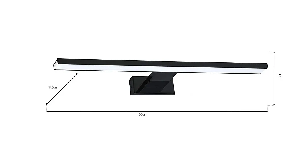 Czarny kinkiet do łazienki - N014-Folind 13,8W 60x11,5x4 cm