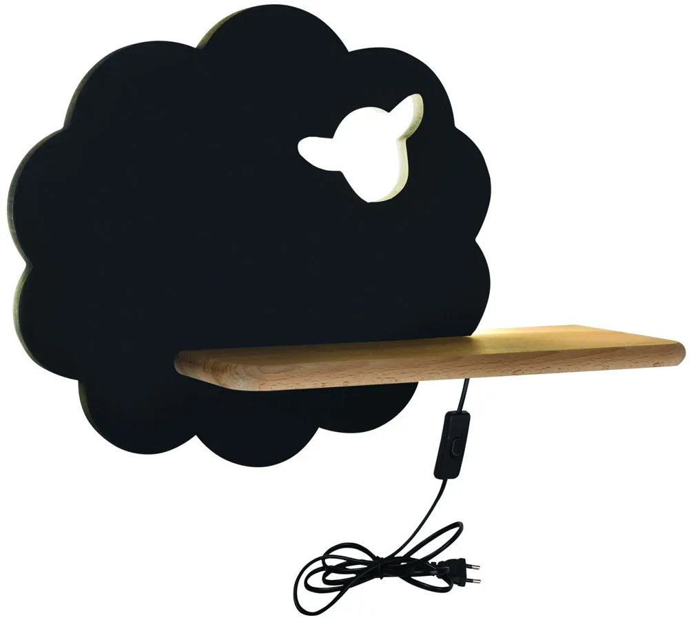 Dotyczy: Czarna lampka dziecięca owieczka z półką - K007-Nilos