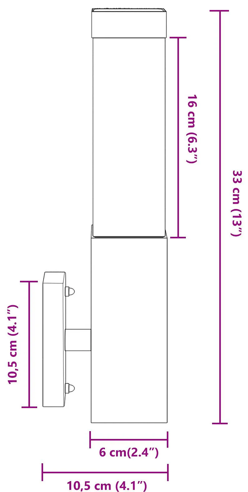 Wymiary: 10.5 x 6 x 35 cm
