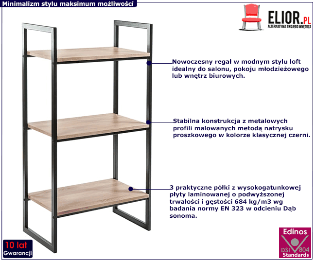 - Modny kolor: czarny + dąb sonoma. Kliknij w link i sprawdź także inne regały industrialne w sklepie Edinos.pl. Stwórz swój praktyczny zestaw mebli.