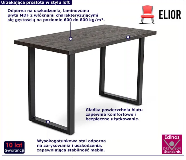 • stalowe nogi wykonane z profili nie tylko dodają stołowi wyjątkowego charakteru, ale również zapewniają jego stabilność i trwałość
