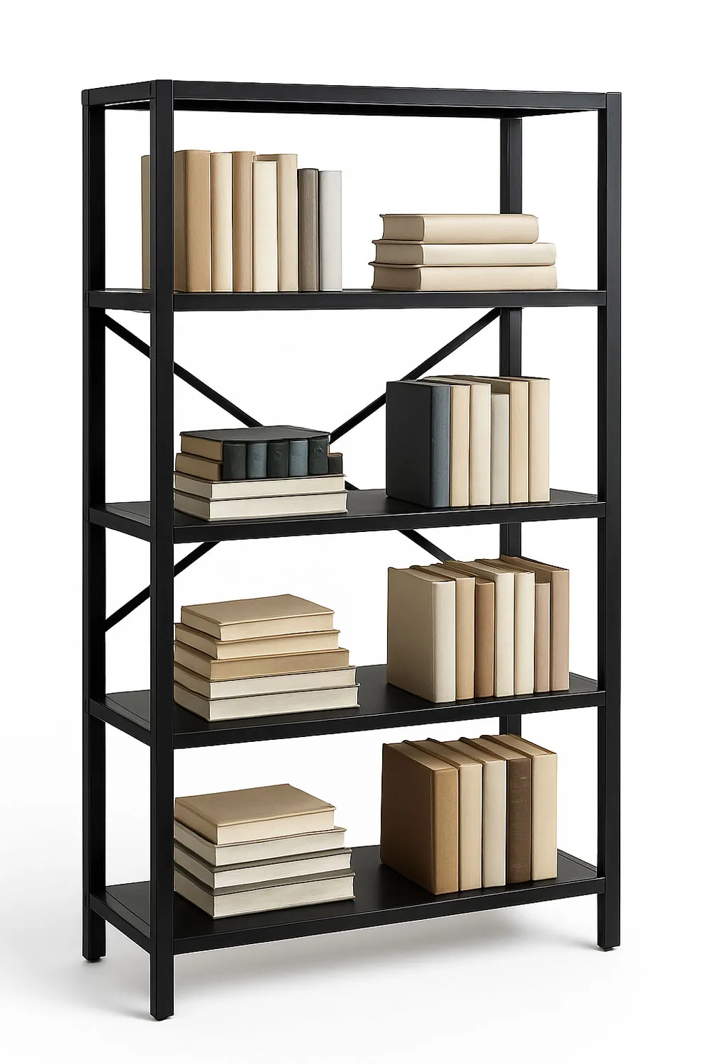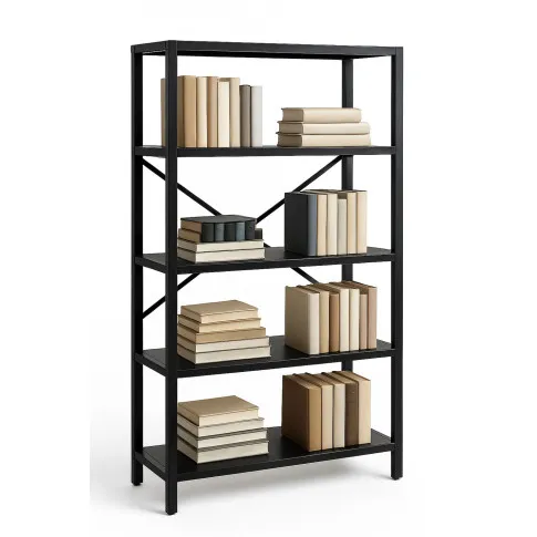Ten regał to świetny wybór do nowoczesnych wnętrz. Czerń prezentuje się elegancko, a otwarta konstrukcja sprawia, że mebel wygląda lekko i nie przytłacza przestrzeni. Półki są solidne, bez problemu utrzymują książki i różne dekoracje. Samodzielny montaż nie sprawił problemów, wszystko było dobrze oznaczone.Zdecydowan ie warto