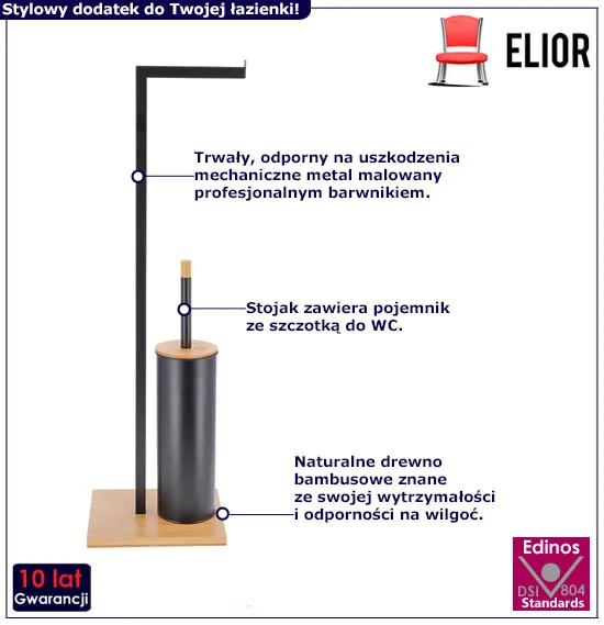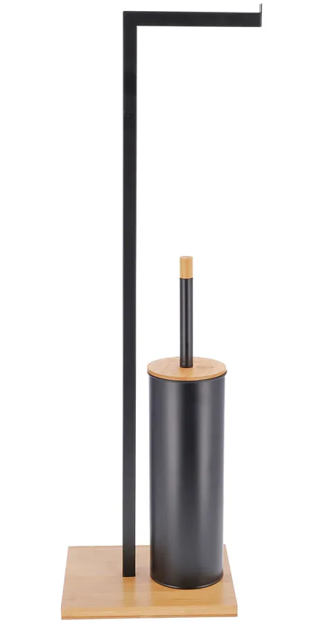 Czarny metalowy stojak na papier toaletowy i szczotkę - Sangar