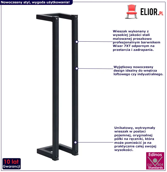 - Modna kolorystyka: czarny. Kliknij w link i sprawdź także wieszaki łazienkowe w sklepie Edinos.pl i stwórz swój praktyczny komplet mebli łazienkowych.