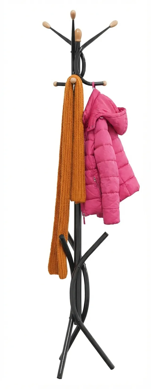 Solidny i estetyczny produkt. Metalowa konstrukcja sprawia, że jest stabilny, a czarne wykończenie nadaje mu nowoczesny wygląd. Montaż jest prosty, a całość dobrze komponuje się w przedpokoju. Haczyki są rozmieszczone na odpowiedniej wysokości, co ułatwia korzystanie. Jedyne, na co warto zwrócić uwagę, to konieczność dokładnego dokręcenia elementów dla pełnej stabilności.