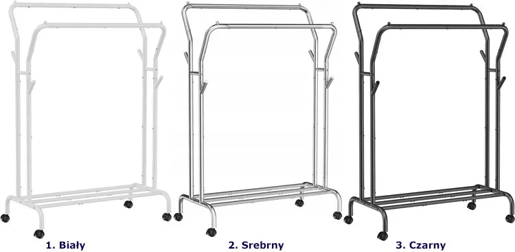 Kolory metalowego wieszaka na kółkach na ubrania Neil