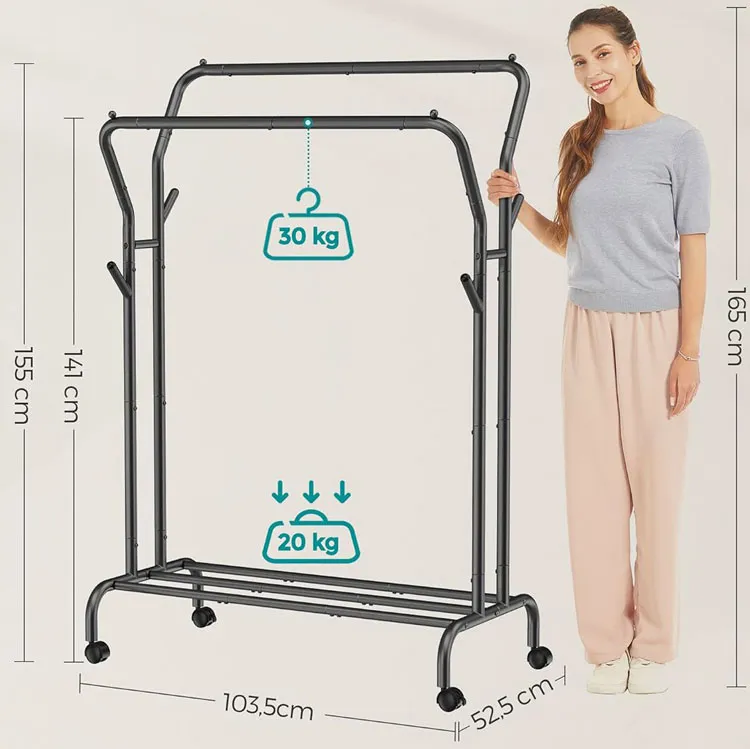 Czarny mobilny stojak na ubrania z półką - Neil