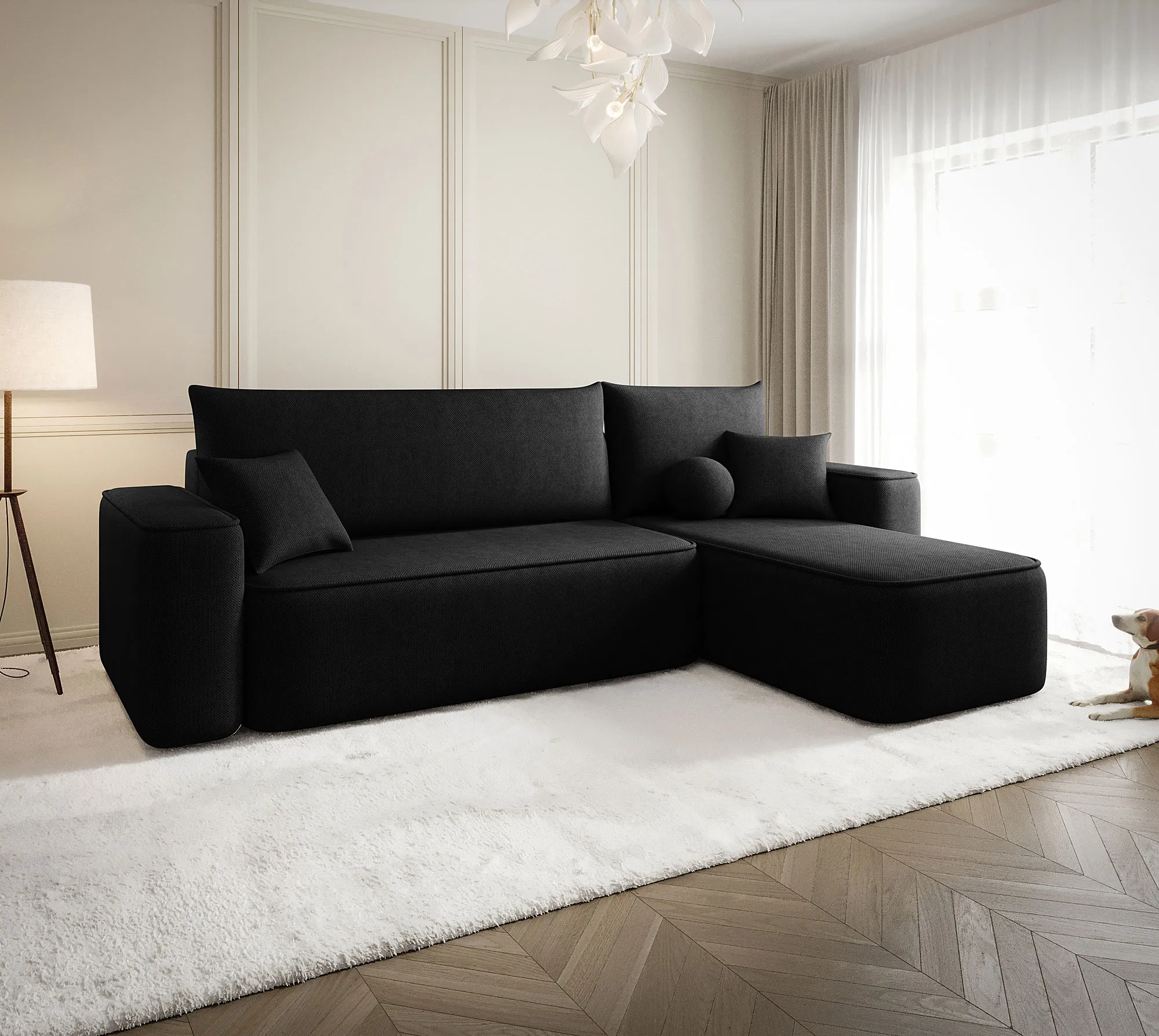Czarny narożnik z pojemnikiem na pościel - Mossira 4X