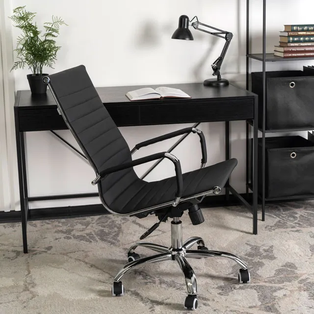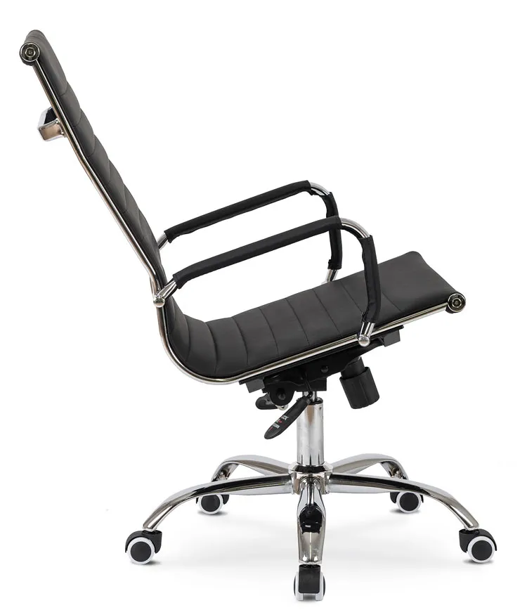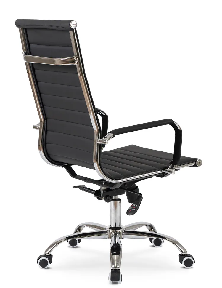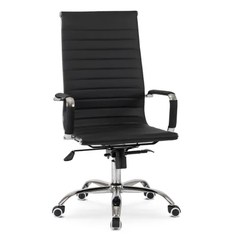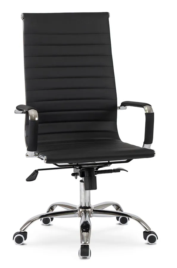 • czarna, elegancka tapicerka ze skóry ekologicznej doskonale łączy się z chromowanymi elementami fotela, nadając mu stylowego wyglądu, idealnego do nowoczesnych biur i gabinetów