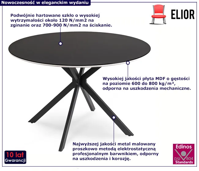 Okrągły stół ze szklanym blatem do salonu Nivis