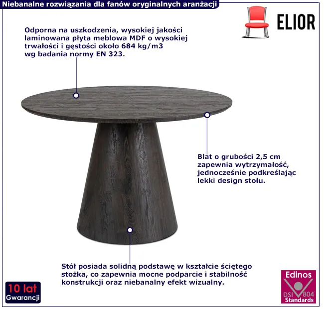 Czarny okrągły stół na stożkowej podstawie - Fernando