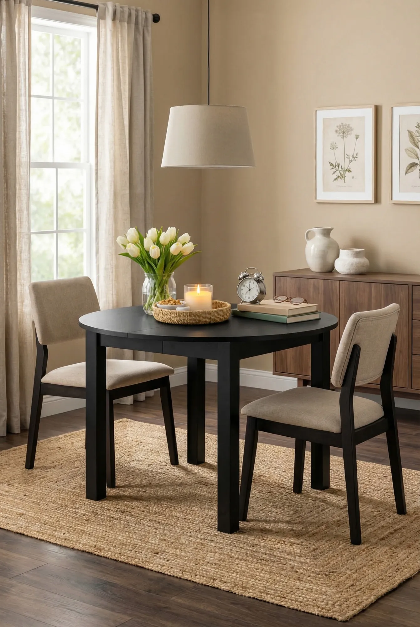 Dotyczy: Nowoczesny okrągły stół rozkładany dąb artisan + czarny - Alenox